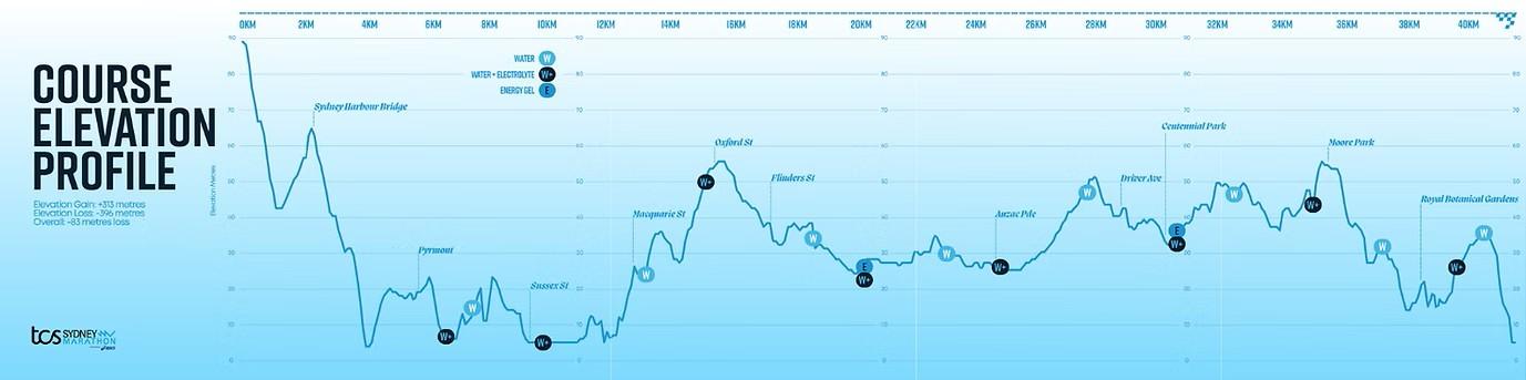 Het parcours is relatief vlak. Wel wordt 1x de befaamde Harbour Bridge aangedaan.