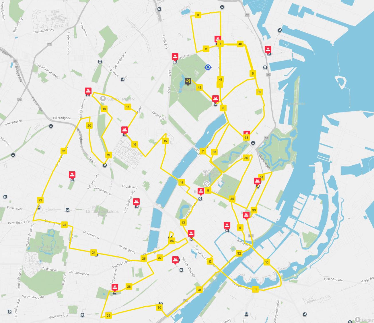 De route loopt in zijn geheel door de stad Kopenhagen en Frederiksberg. Op dit vlakke parcours kunt u een snelle tijd lopen! Start en finish is op Islands Brygge. Een mooie kans om een persoonlijk record te lopen.