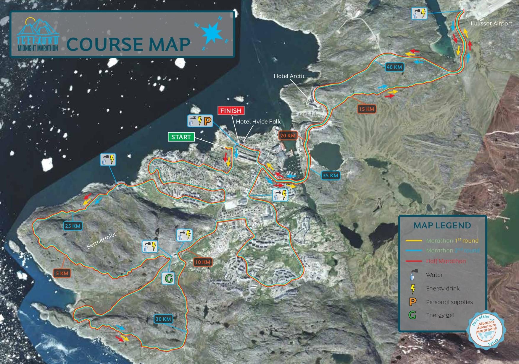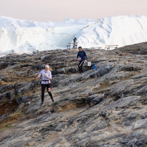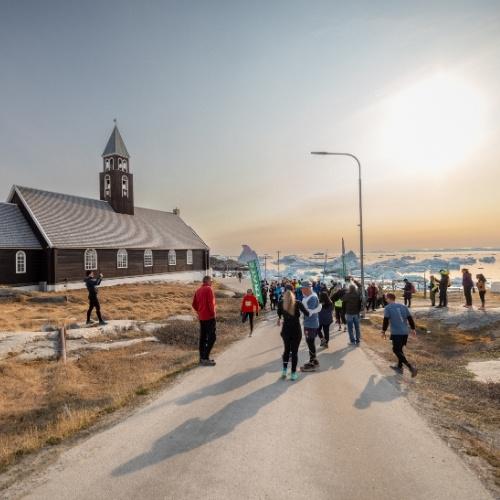 Lopers ontvangen hun goodiebag op de luchthaven van Kopenhagen voordat ze naar Kangerlussuaq vertrekken. De goodiebag bevat je startnummer, timingchip, officieel race T-shirt, informatie over het parcours en een schema voor je reis.