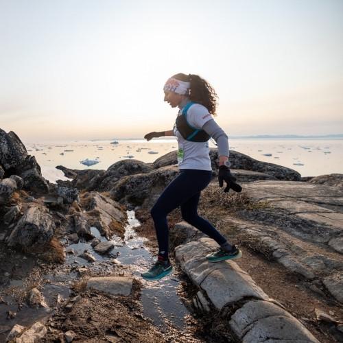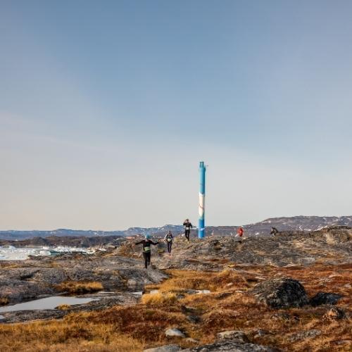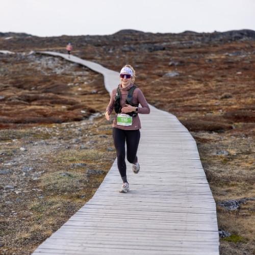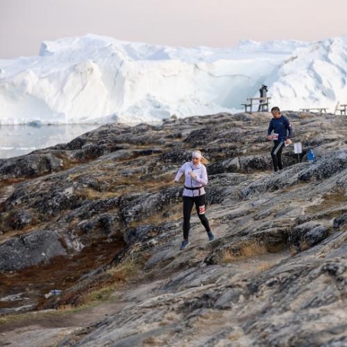 Lopers ontvangen hun goodiebag op de luchthaven van Kopenhagen voordat ze naar Kangerlussuaq vertrekken. De goodiebag bevat je startnummer, timingchip, officieel race T-shirt, informatie over het parcours en een schema voor je reis.