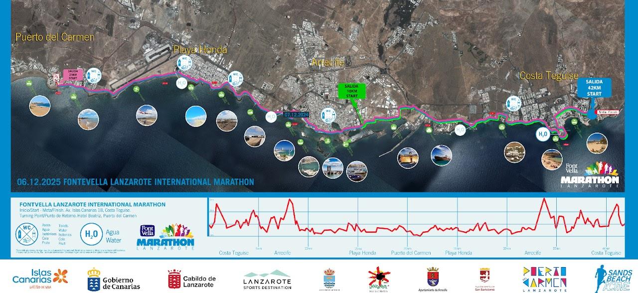 Het parcours van de Lanzarote Marathon is heuvelachtig.