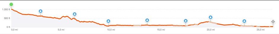 De eerste 15km zijn over het algemeen in dalende lijn. De rest van het parkoers is vrij vlak met een kleine klim op die kwart van het parcours.