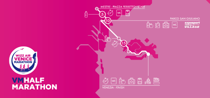 De Venetië halve marathon is vlak en snel.